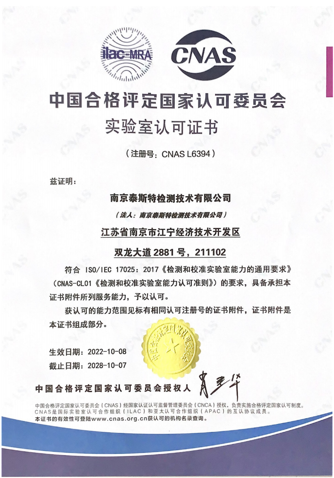 南京泰斯特檢測技術有限公司順利通過CNAS復評審
